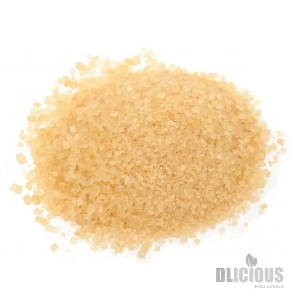 Color y sabor:Tiene un color dorado o marrón claro y un sabor distintivo, ligeramente caramelizado, debido a que no se blanquea ni se le extrae la melaza.