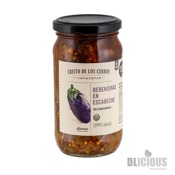 Las berenjenas en escabeche Cristo de los Cerros – Alcaraz son una conserva artesanal argentina elaborada por Alcaraz Gourmet, conocida por su sabor intenso y textura tiernaSe caracterizan por ser sin gluten y aptas para veganos, y sus ingredientes incluyen berenjenas, aceite de girasol, vinagre, ajo, pimentón, ají molido, orégano y laurel. Este producto es ideal para consumir como parte de picadas o guarniciones.