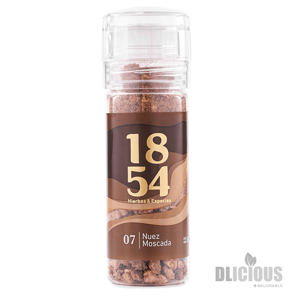 1854 Nuez Moscada es dulce, suave y muy fragante, por lo que combina excelentemente con otras especias más fuertes como la pimienta. Por la rápida volatilidad de sus aroma es recomendable que se molerla inmediatamente antes de su uso para poder aprovechar al máximo su fragancia. Las verduras especiadas con nuez moscada refuerzan el sabor natural.