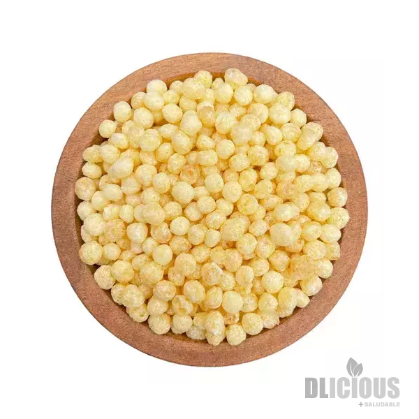 Proceso:Las semillas de quinoa se someten a calor, lo que las hace expandirse y volverse más ligeras y crujientes.