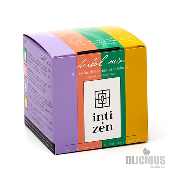 Herbal Mix contiene la colección de las 4 tisanas de hierbas sin teína de Inti Zen, relajantes, digestivas y energizantes, para disfrutarlos a toda hora.